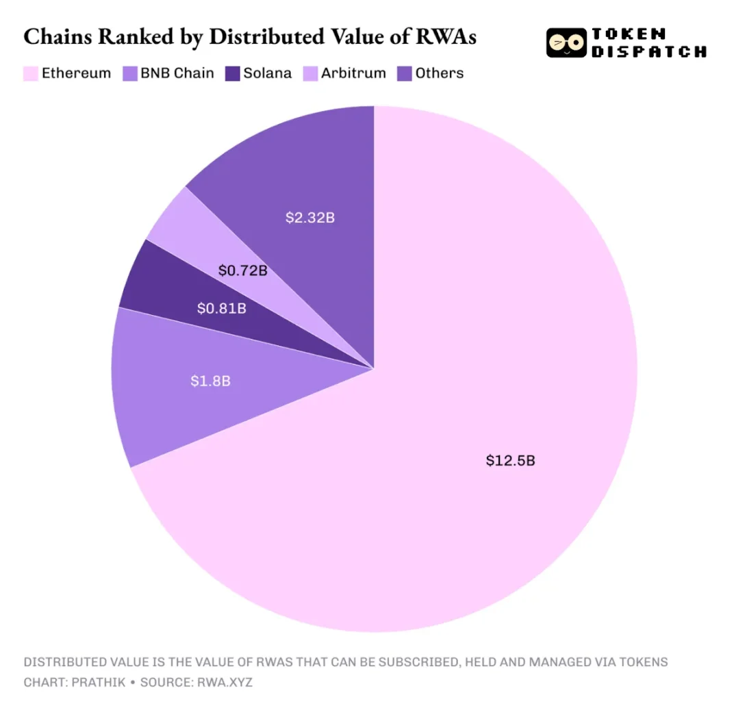 而在現實世界資產代幣化領域,以太坊同樣佔據絕對主導地位。