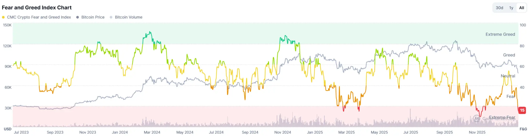 市場恐慌指數 15,市場情緒再次陷入極度恐慌。