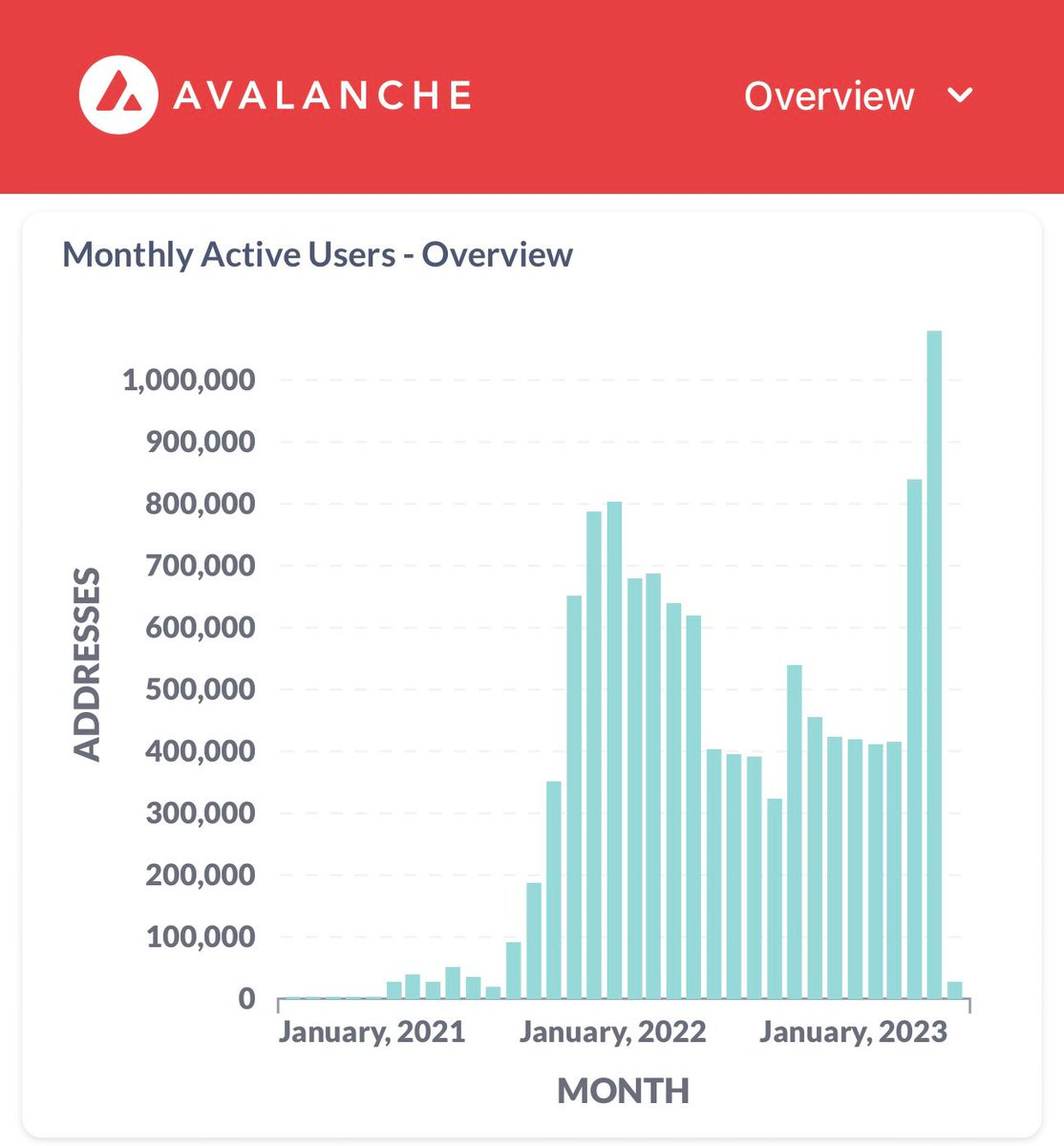 在熊市中期,Avalanche 的月活躍錢包創下歷史新高。