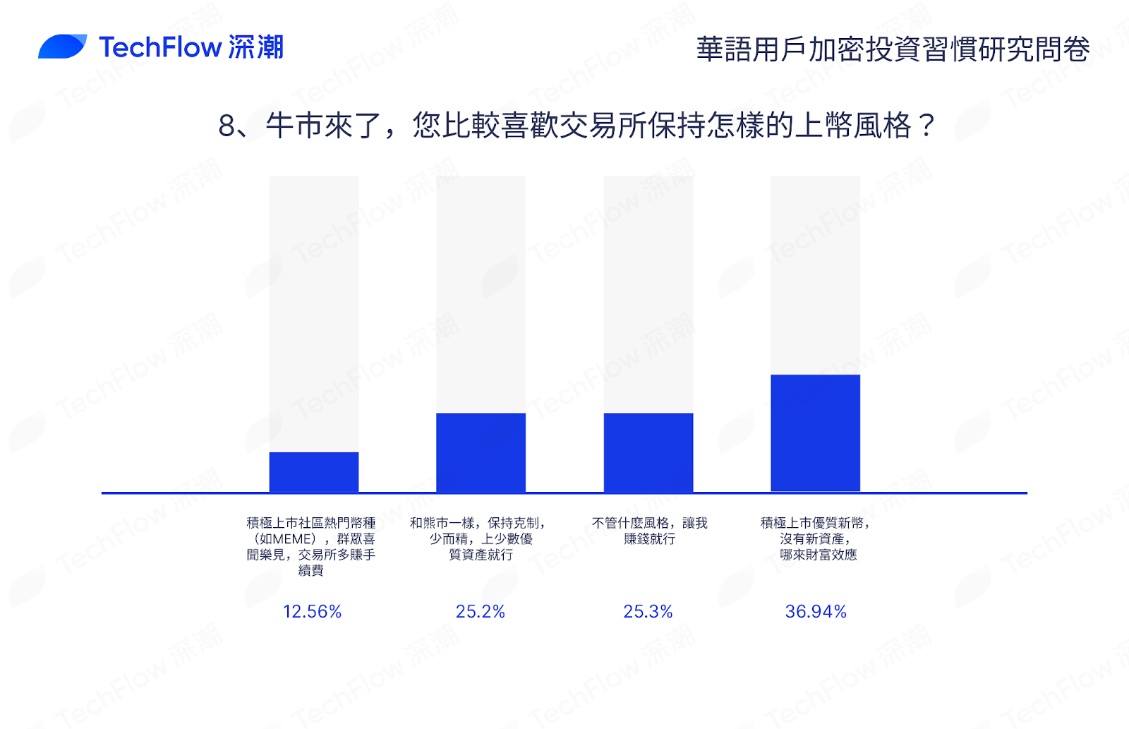 25.30% 的受訪者喜歡:不管什麼風格,讓我賺錢就好。這部分用戶更關注獲利結果,而並不太關注具體的交易所上幣策略。