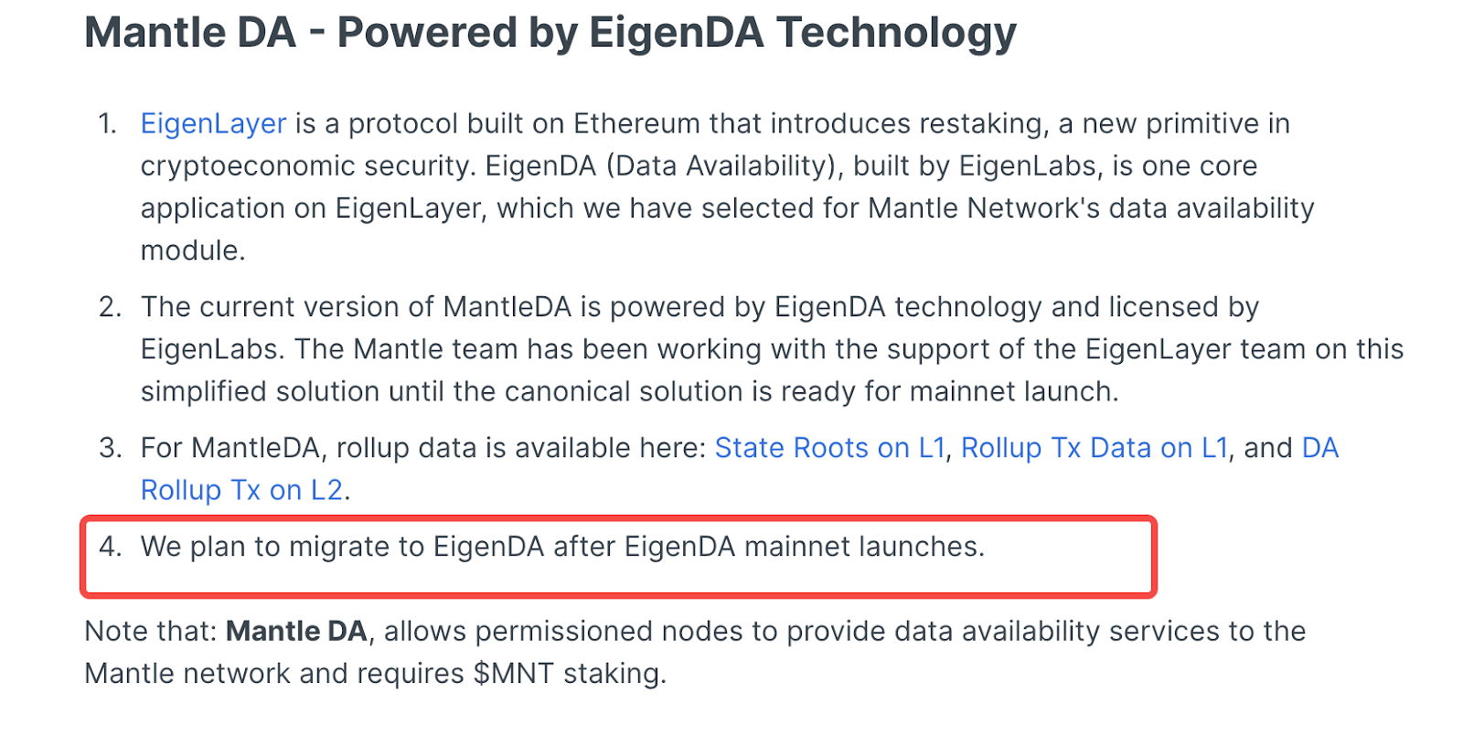 後續等到 EigenDA 主網上線後,再行考慮作相應的技術遷移。