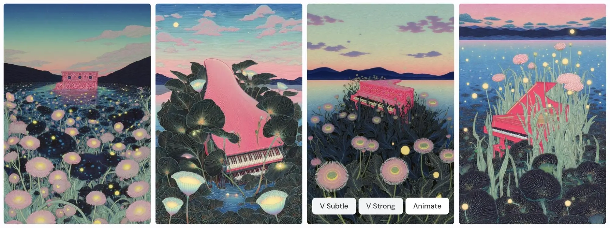 透過 MidJourney 生成的圖像或用戶上傳的任意圖片,點擊「Animate」按鈕 (Midjourney 網頁版),就能生成四種 5 秒、480p 解析度的短影片,且支援任何長寬比和不同創作需求。
