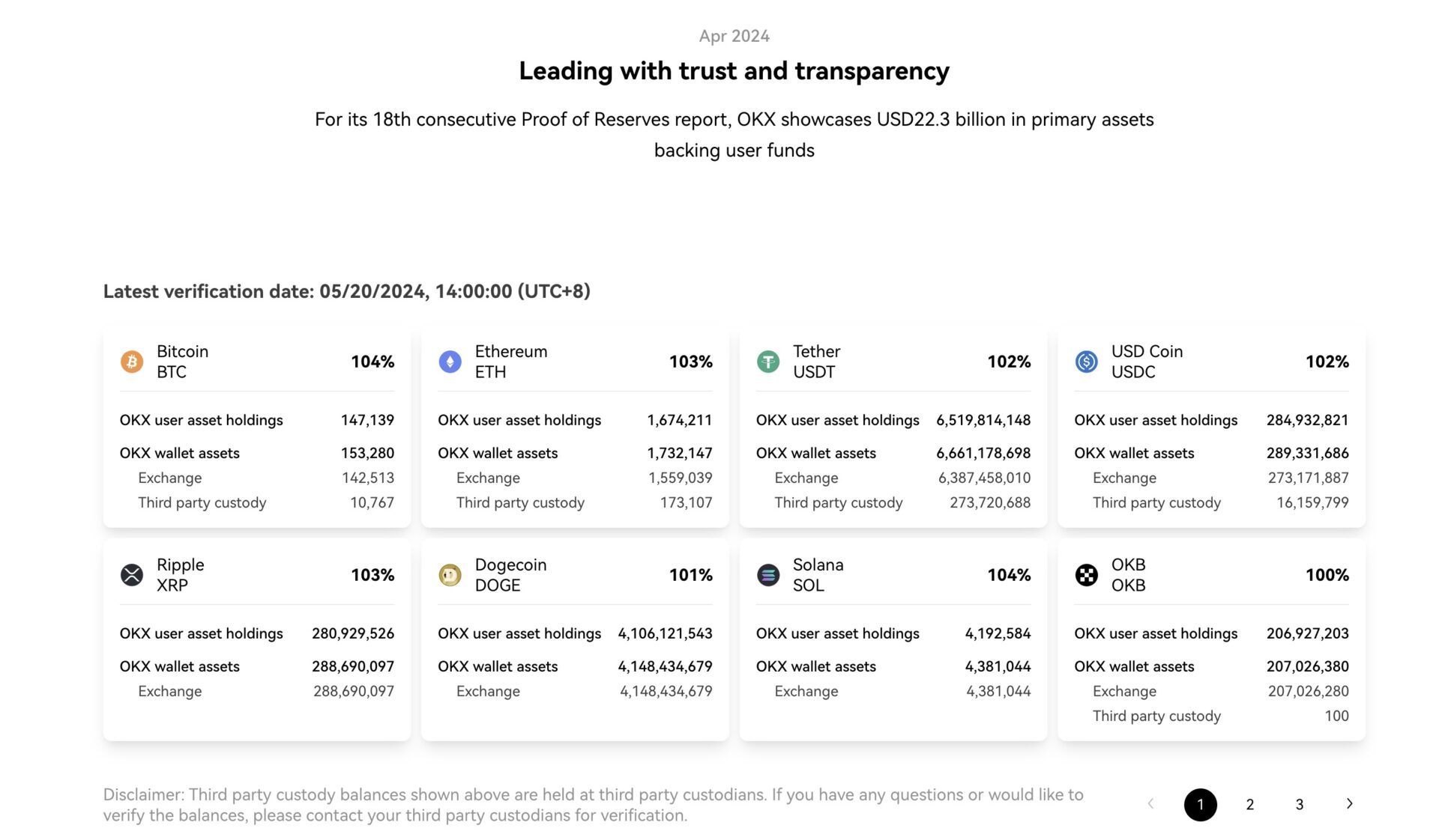 OKX 發佈第 19 期 PoR:22 個公示幣種的儲備金率均超過 100%