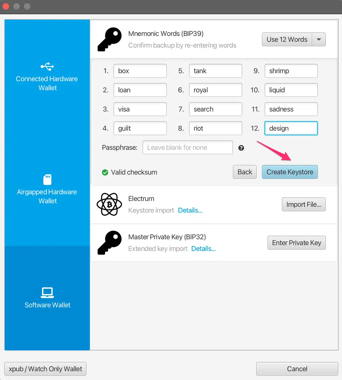 點擊import keystore。