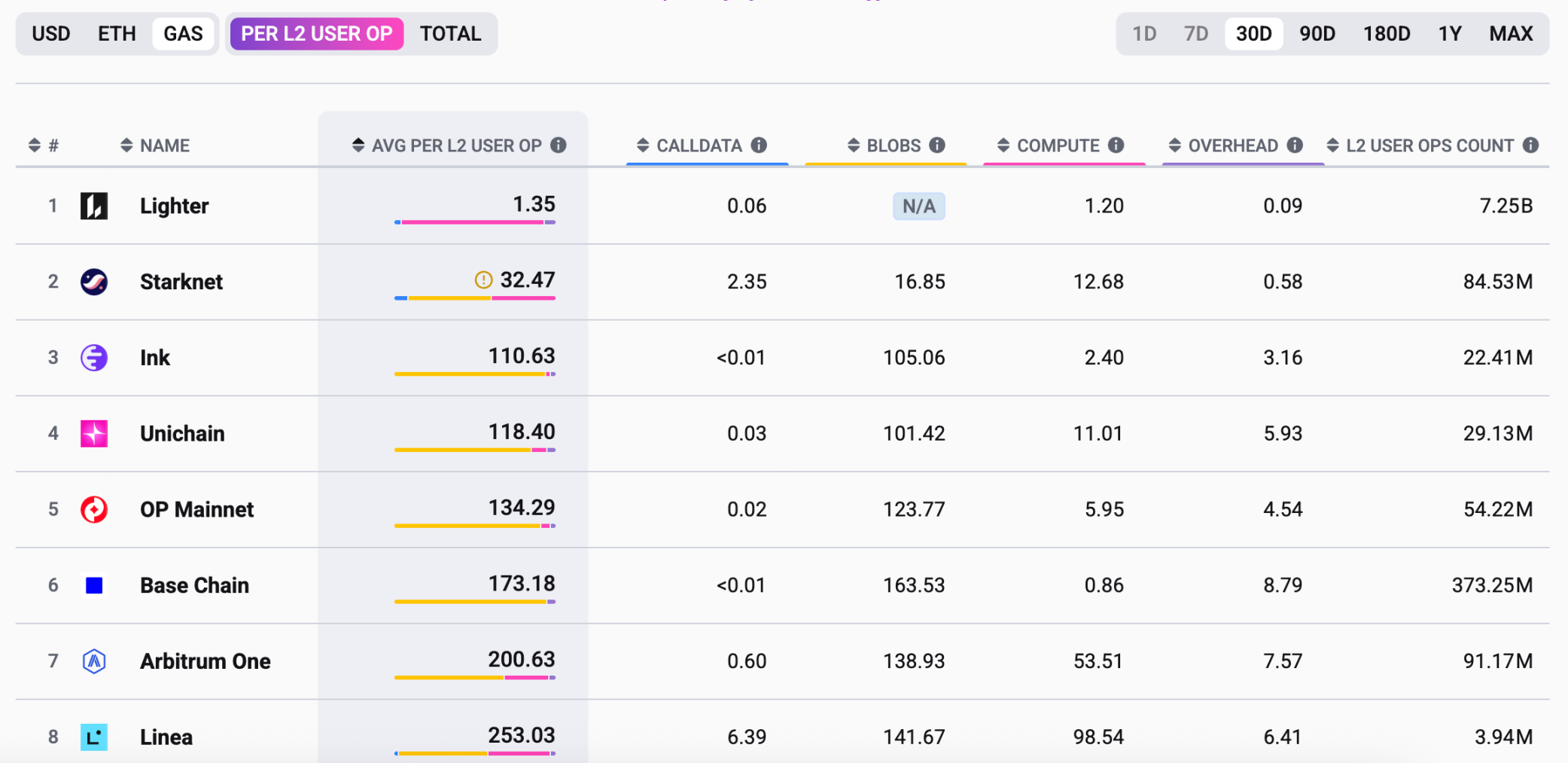 如此,散戶的交易熱情高,高級帳戶的高頻交易有利可圖,Lighter 只需要向高級帳戶收取手續費就可以既提供更好的用戶體驗,也可以從做市商手中收取可觀的費用。這種互相成就在交易數量不斷擴大的同時也大幅降低了 Gas 費用。