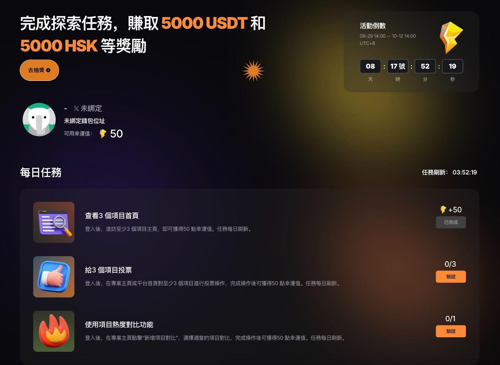 - 活動獎品:包含 USDT、HSK 以及 RootData API 使用權等