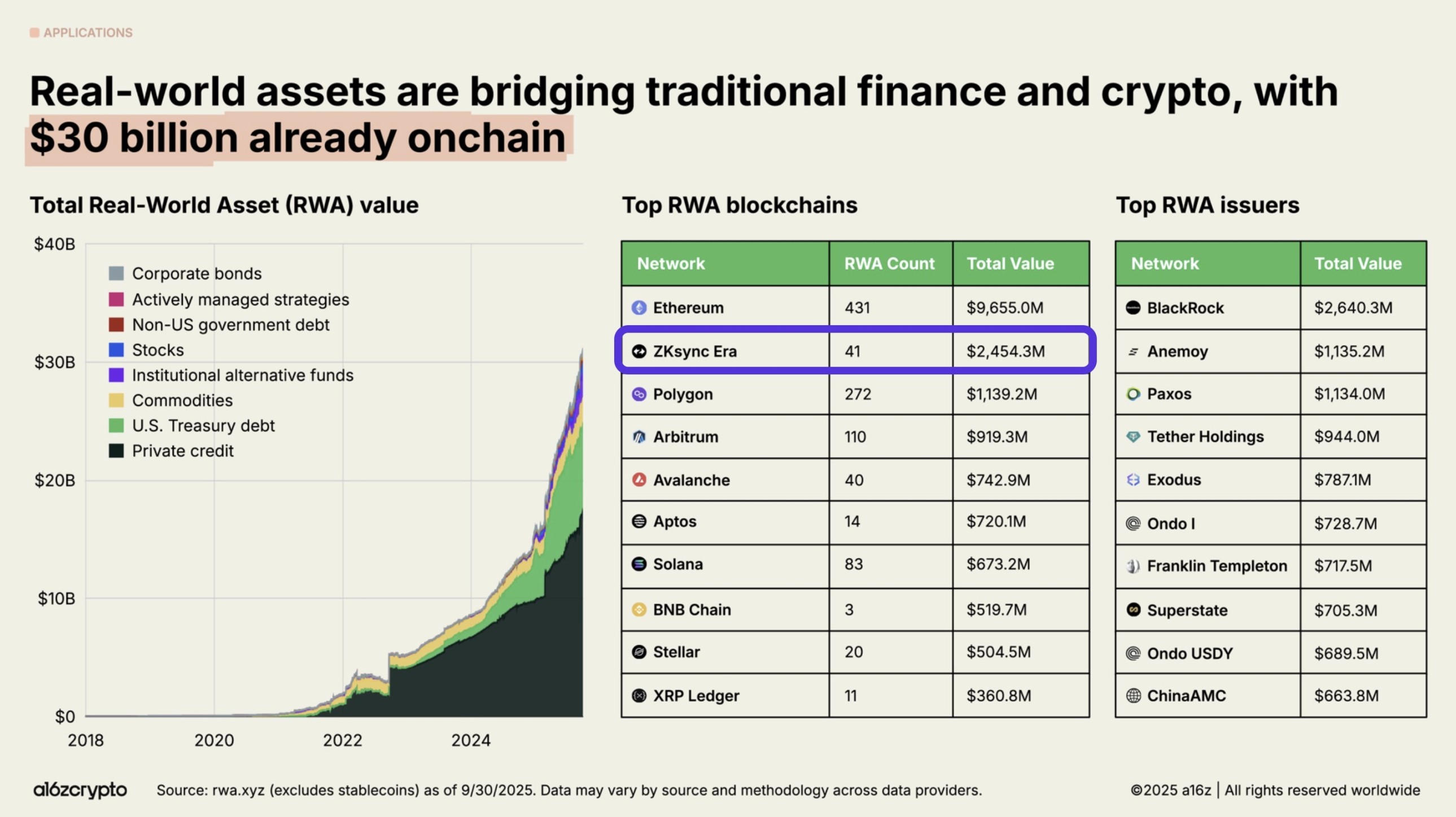這或許也是 ZKsync 成為僅次於以太坊的第二大代幣化 RWA 資產發行網路的原因。