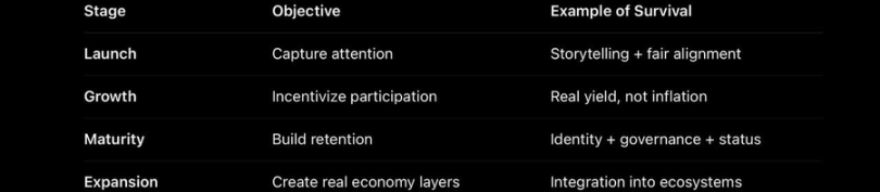 • 留存階段:社群圍繞著代幣形成循環(權益、治理、認同);