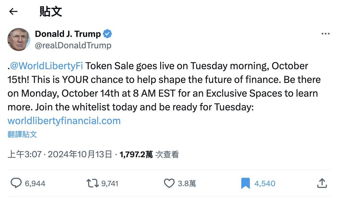 【WLFI 幣】就在今晚!川普力推項目 World Liberty Financial 將展開銷售!