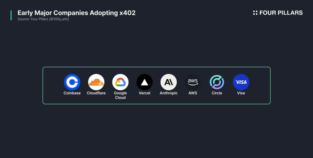 有趣的是,與典型的加密概念不同,x402 吸引了許多 Web2 科技巨頭的關注,而這些企業已開始實際採用該協議。