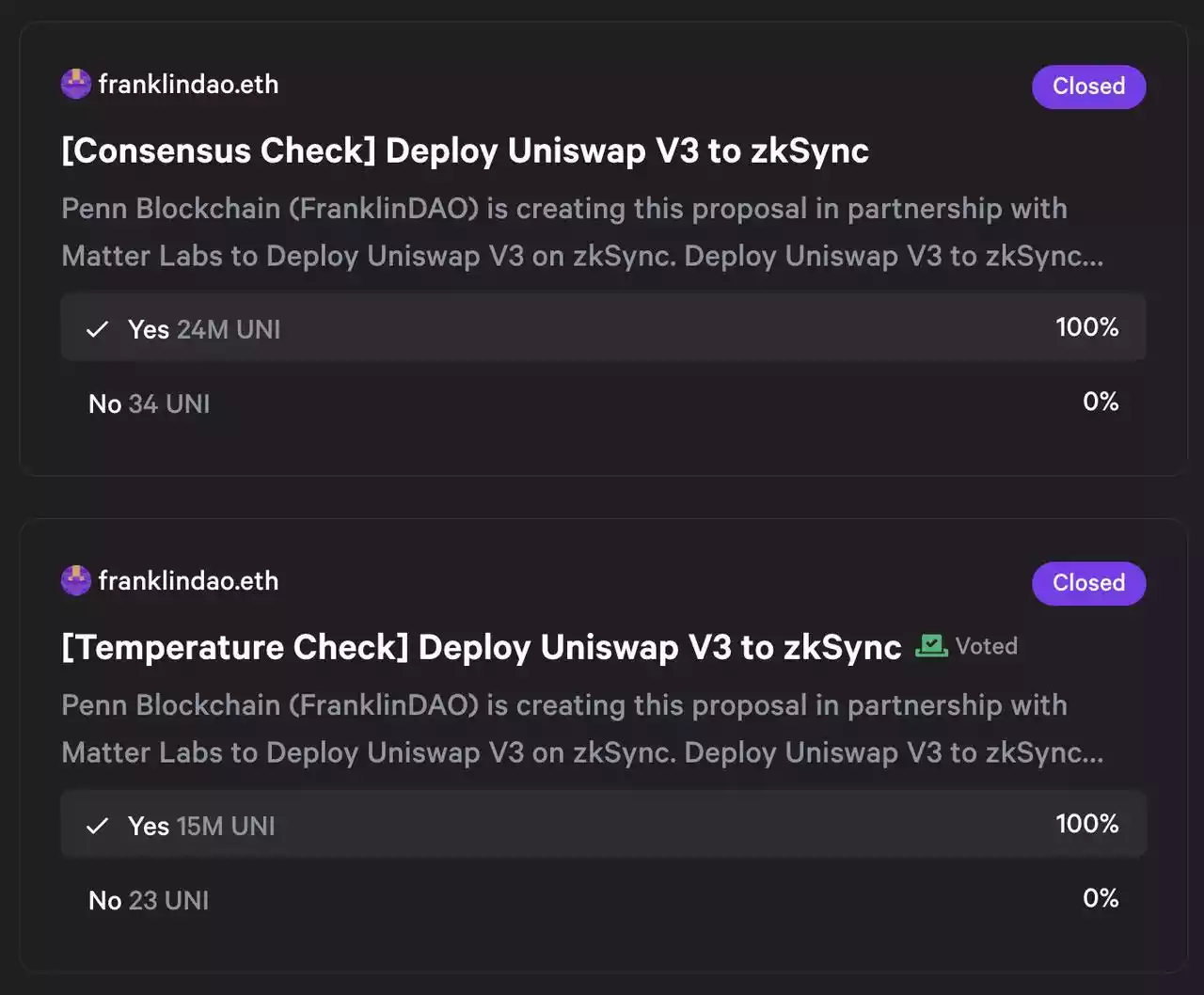 Uniswap V3 可能很快就會部署到 zkSync,鉴于 SnapshotLabs 上的相關投票參與度幾乎前所未有,並且「同意」方呈現傾倒性態勢。